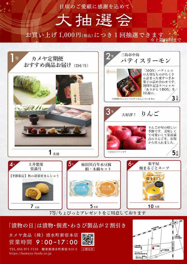 カメヤ本店【漬物の日】10月開催のお知らせをいたします。