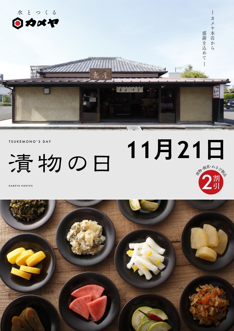 カメヤ本店【漬物の日】11月開催のお知らせをいたします。