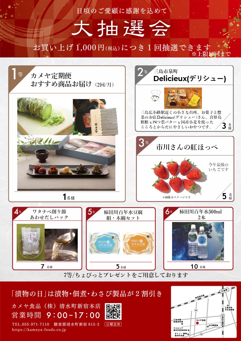 1等は、カメヤのおすすめ商品をセットにして、ご自宅に2回お届け!