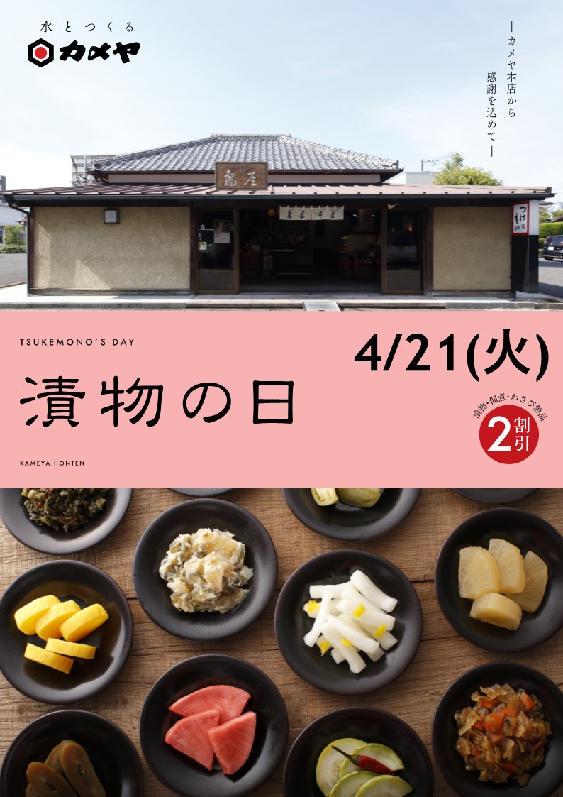 亀屋本店【漬物の日】4月の開催をお知らせをいたします。